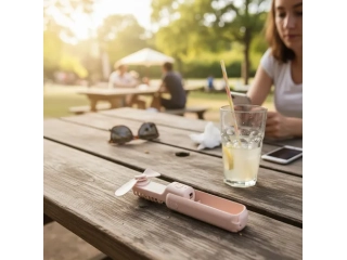 Ventilador plegable IBI CRAFT "Tendance" con funciones adicionales de linterna y Power Bank de 2000mAh. Dimensiones : 111.7 mm x 38 mm x 34 mm. Peso: 151 grs.