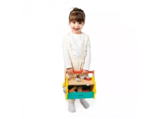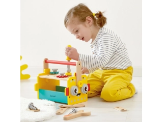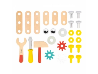 Con esta caja de herramientas de juguete, los niños a partir de 3 años podrán disfrutar de un divertido juguete de construcción modular. ¡Es el soporte ideal para estimular su creatividad y motricidad, jugando a hacer bricolaje. Este juego de construcción ofrece todo lo necesario: 3 herramientas (destornillador, llave inglesa y martillo), 13 piezas de madera (tablas y engranajes) y 14 piezas de tornillería (tornillos y clavos). ¡Son 30 accesorios en total! Con todo eso, los niños se inventan todas las ingeniosas máquinas que quieran trabajando la destreza y dando rienda suelta a la imaginación. Además, los tornillos tienen muescas para parecerse aún más a los de verdad y ofrecer una experiencia de juego realista a los más pequeños. El otro punto fuerte de esta caja de herramientas infantil es su asa extraíble: ¡también se puede montar y desmontar! Con ella, el transporte es sencillo. Sin el asa, este juego de bricolaje se convierte en un banco de trabajo compacto de madera sobre el que fijar todo tipo de elementos!