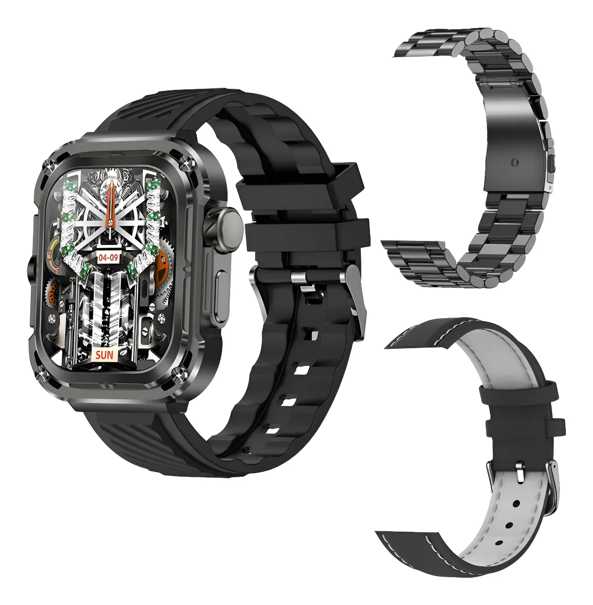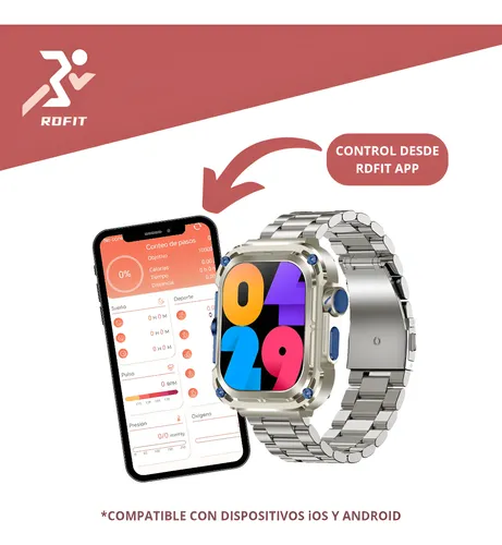 La malla del reloj está disponible en acero inoxidable, cuero y goma, lo que permite elegir el estilo que mejor se adapte a tu personalidad. Con compatibilidad en inglés, español y francés, este smartwatch se adapta a diversas necesidades lingüísticas. Su GPS y conectividad Bluetooth aseguran que estés siempre conectado y orientado, sin importar dónde te encuentres.