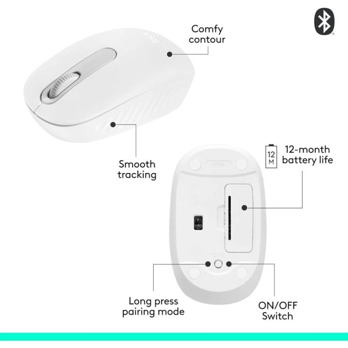 mouse logitech, m196, off white, bluetooth, mouse inalámbrico, mouse ergonómico, accesorios de oficina, tecnología, periféricos, copymas, logitech uruguay, mouse portátil