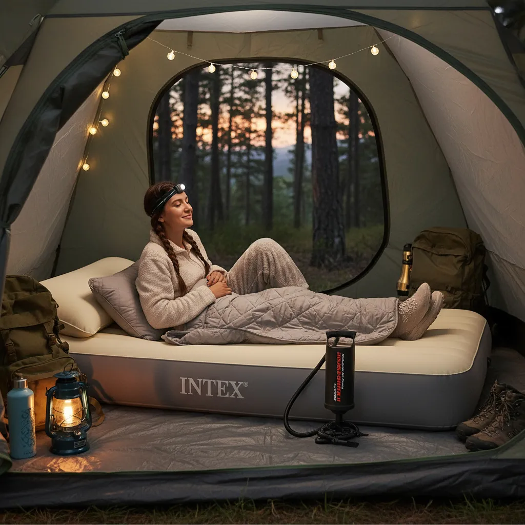 colchón inflable, intex, dura beam, 2 plazas, inflador manual, colchón de aire, camping, colchón matrimonial, intex uruguay, copymas, descanso portátil, colchón inflable doble