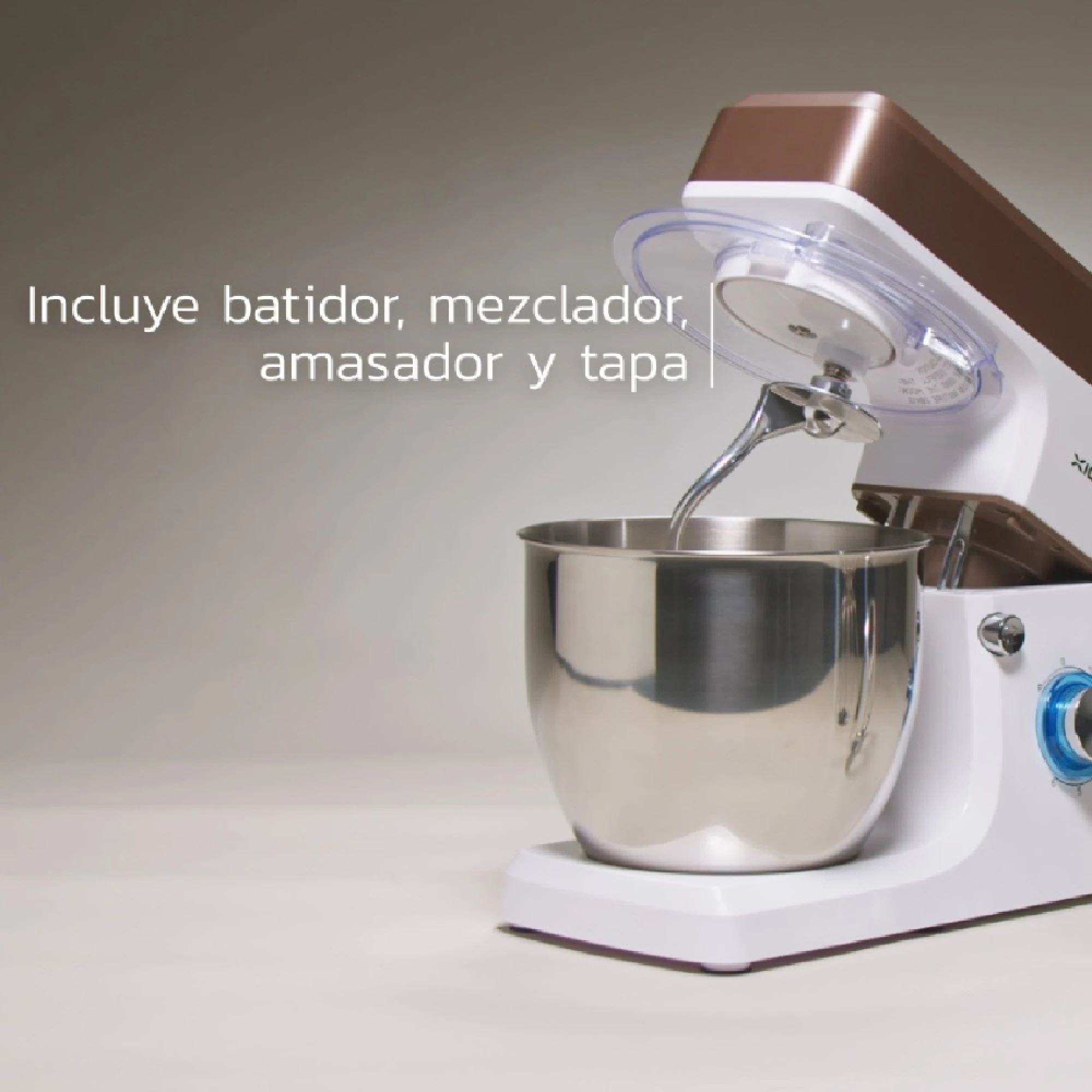 Potencia y precisión para tus recetas. La batidora planetaria de 1000W es ideal para preparar masas, cremas y mezclas con un resultado profesional. Con bowl de gran capacidad y múltiples velocidades. ¡Cociná como un experto en casa!