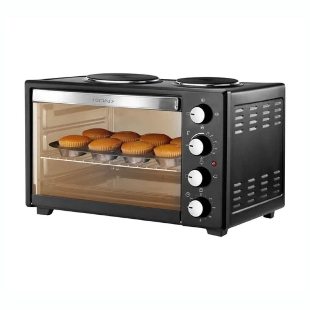 Compacto y eficiente. El horno eléctrico Xion de 25 litros es ideal para cocinas pequeñas. Perfecto para hornear, gratinar o tostar con control de temperatura y temporizador. ¡Practicidad al instante!