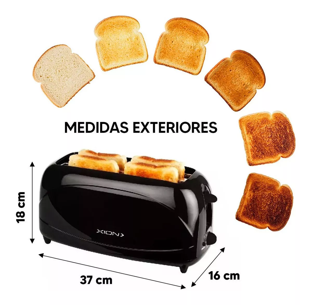 tostadora xion, tostadora 4 panes, tostadora eléctrica, tostadora familiar, tostadora moderna, desayuno rápido, tostadora eficiente, electrodomésticos de cocina, tostadora en Uruguay
