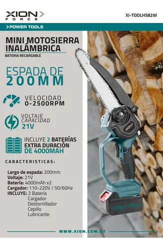 mini motosierra inalámbrica xion, motosierra a batería xion, motosierra recargable 20 cm, mini motosierra xion 2 baterías, motosierra portátil xion, motosierra eléctrica inalámbrica, motosierra jardín xion, mini motosierra uruguay