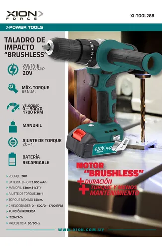 taladro de impacto xion, taladro brushless xion 20v, taladro inalámbrico xion, taladro percutor xion, taladro de impacto a batería, taladro profesional xion, taladro potente xion 20v, taladro brushless uruguay