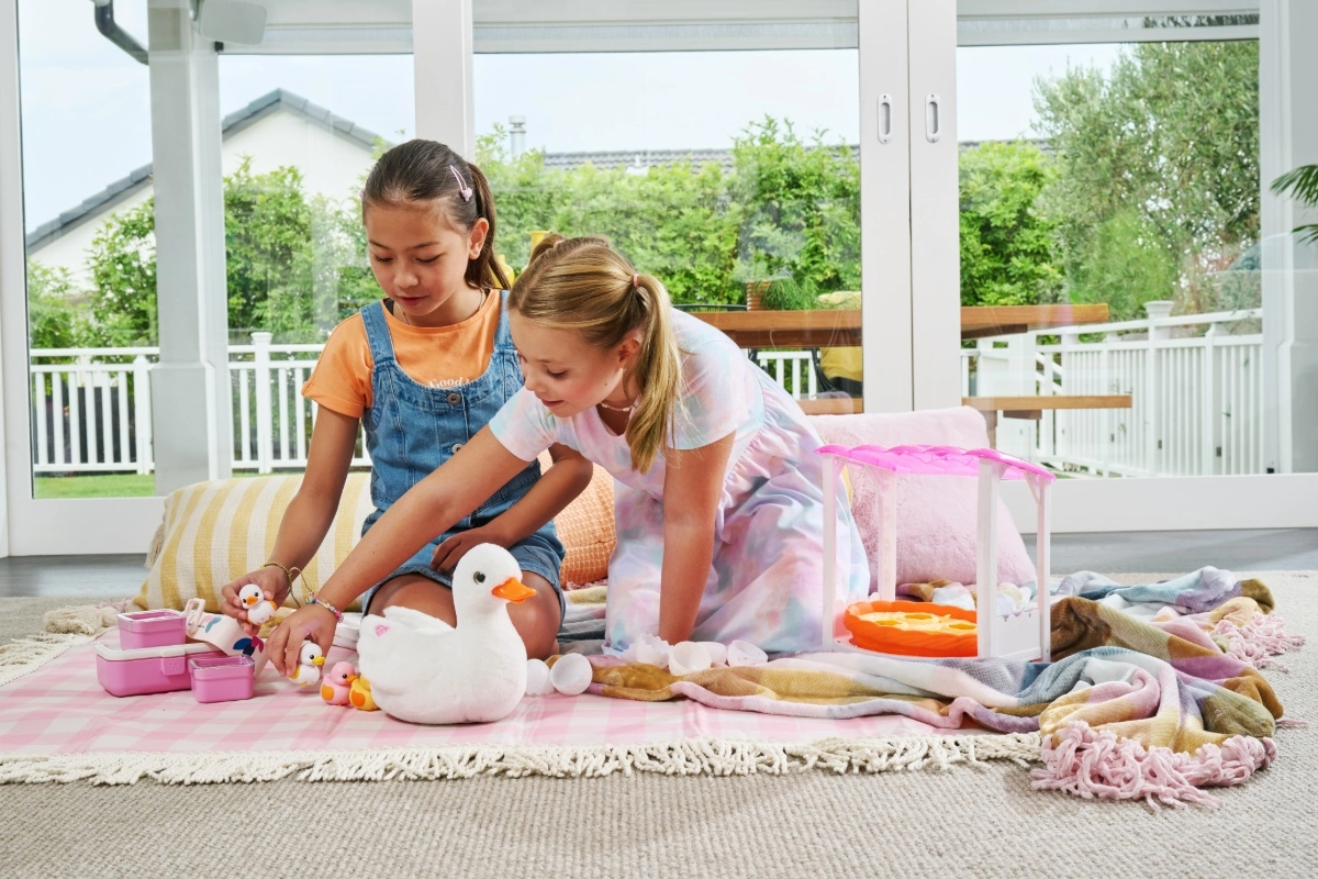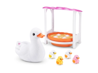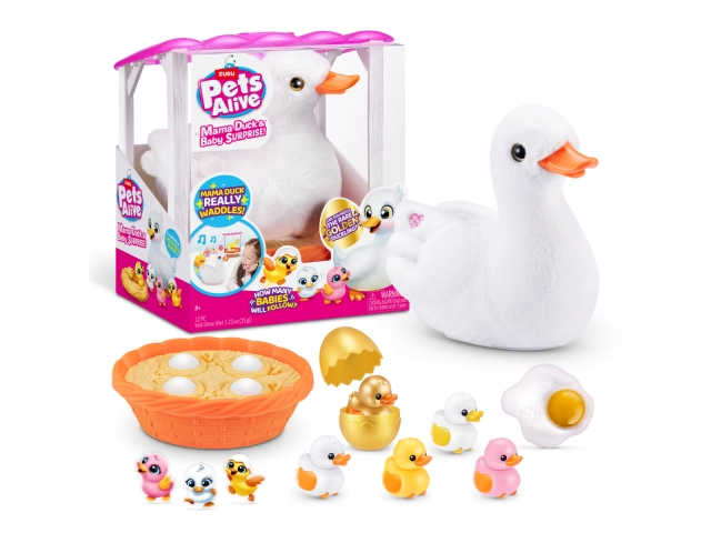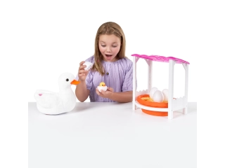 Con 4 huevos para abrir, podrás descubrir cuántos patitos encontrarás. Mamá Pato camina y grazna como un pato real, mientras los patitos la siguen. Además, podrás escuchar más de 10 sonidos adorables, incluyendo "cuac, cuac". Los patitos se acoplan a la cola de Mamá Pato y la siguen cuando camina. ¿Serás afortunado y encontraras el raro patito dorado? ¡Es una experiencia llena de sorpresas!