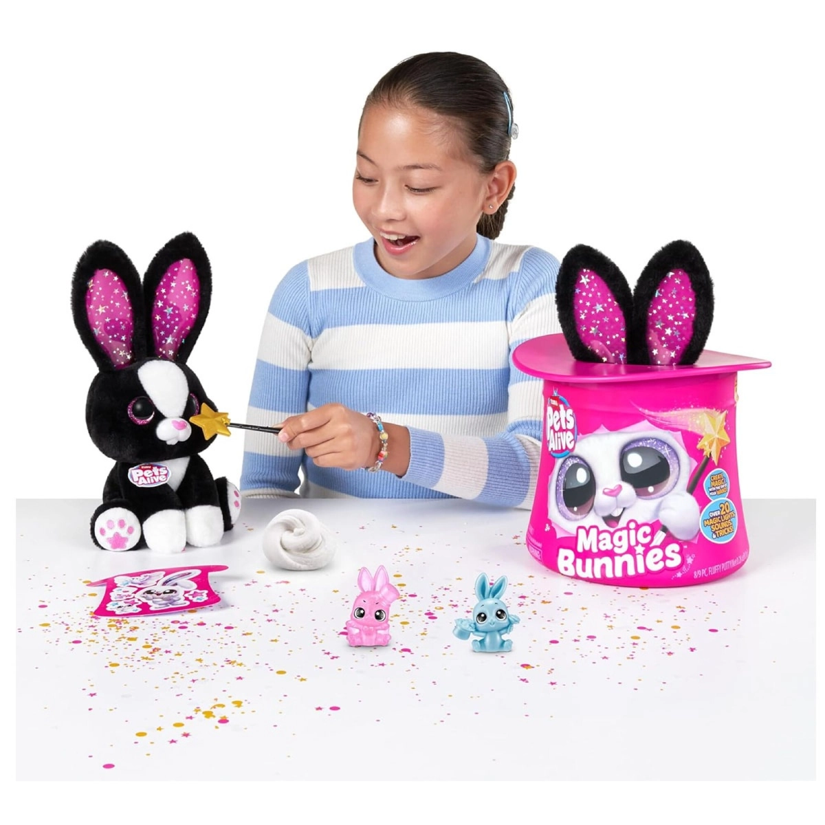 - Luces y sonidos encantadores: Mira cómo las orejas de tu conejo se iluminan y escucha mientras lanza hechizos.