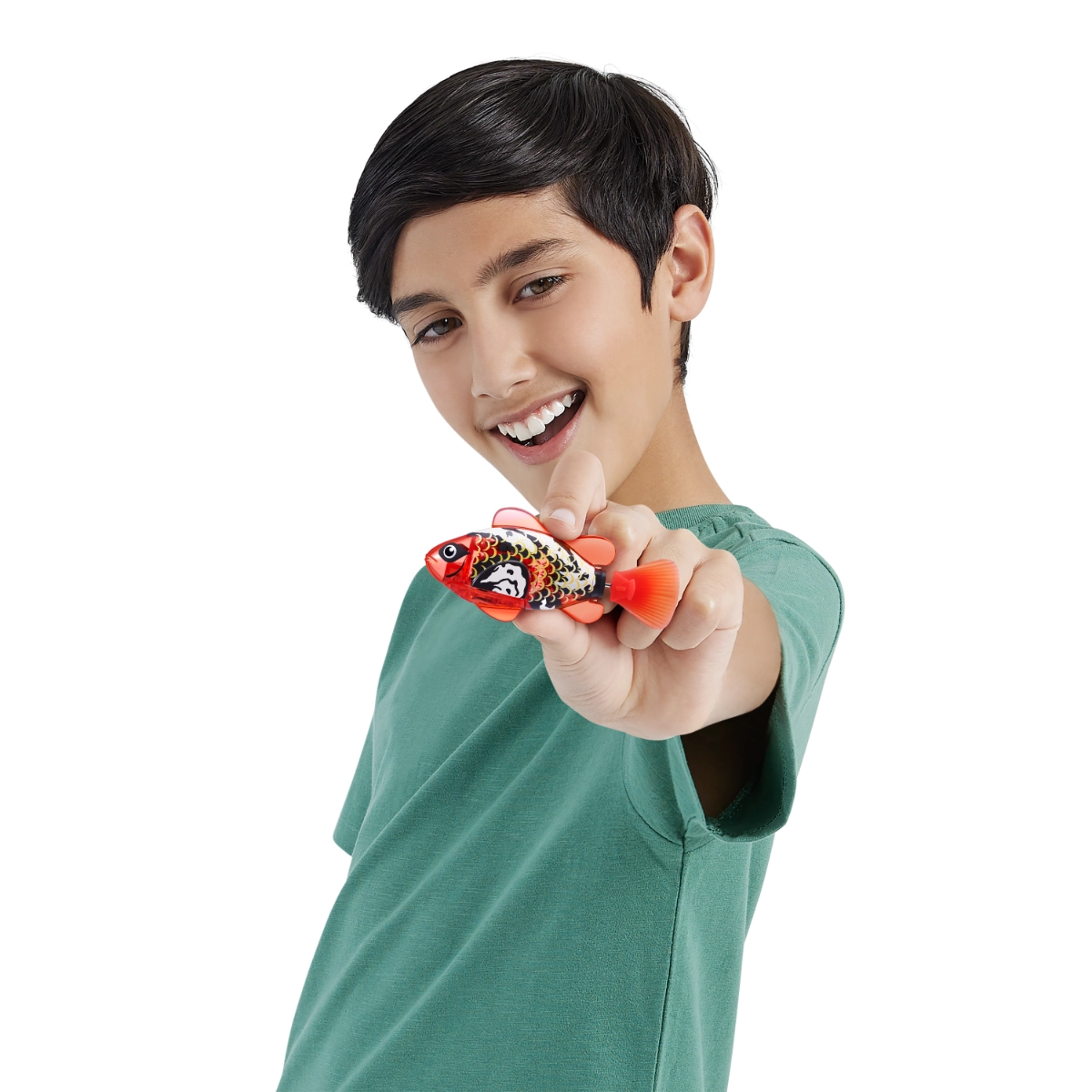 - Cambio de color que se activa con el agua: mira cómo tu Robo Fish cambia de color por arte de magia al dejarlo caer en el agua. Cuando saques el pez del agua, puedes presionar suavemente tu palma sobre sus escamas para devolver el color al original y repetir el juego