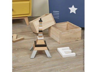 ¡Este es el garaje de madera más guay para niños con sus formas redondeadas y colores brillantes!.