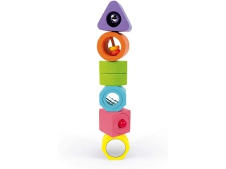 Cada cubo tiene una función añadida distinta para estimular un poco más al bebé: cascabel, caleidoscopio, efectos sonoros, sonajero, pío-pío y espejo.