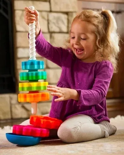 torre arcoiris topa topa, torre de encastre infantil, torre apilable colores, juego didáctico topa topa, torre arco iris madera/plástico, torre encastrable educativa, juguete apilable bebés, torre arcoiris uruguay