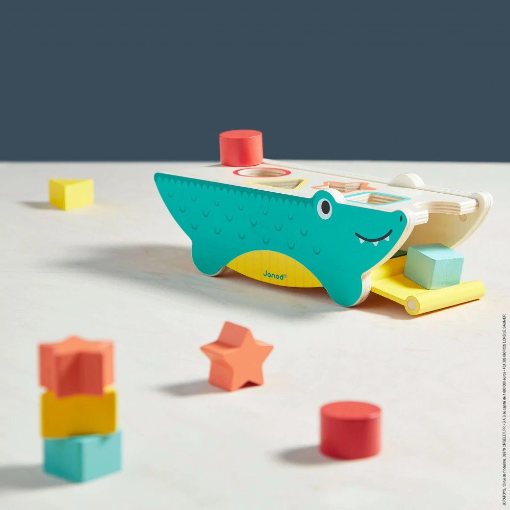 tropik cocodrilo janod, cocodrilo de formas janod, juego de encastre madera janod, encastre infantil janod, juguetes educativos janod, cocodrilo didáctico janod, juguetes janod uruguay, tropik janod
