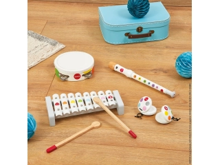 Permite a los niños probar varios instrumentos y encontrar su favorito. Podrán divertirse tocando la flauta, agitando la pandereta, tocando el xilófono o incluso tocando las castañuelas! Descubrirán los distintos sonidos, estimularán sus sentidos y darán sus primeros pasos en la improvisación musical.