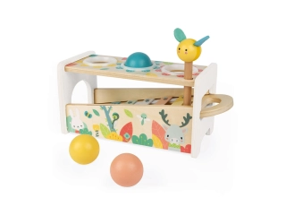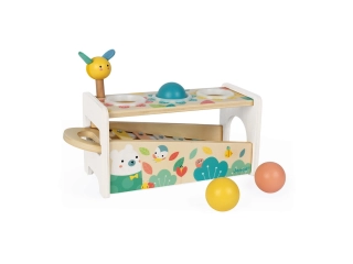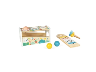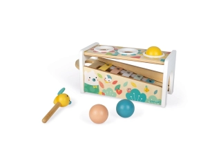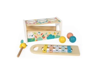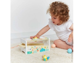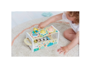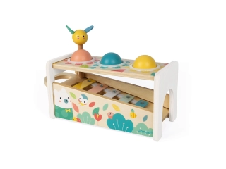 Permitirá al bebé a partir de 18 meses desarrollar su destreza mientras se divierte. El xilófono para golpear Pure es un juego dos en uno: un martillo en forma de abeja para golpear las tres bolas que caen haciendo sonar las teclas del xilófono, que a su vez es extraíble para poder jugar con él en todas partes.