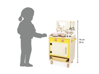 Con su cocina de madera, los niños a partir de 3 años podrán soñar locas recetas en la cocina e imitar a los mayores.