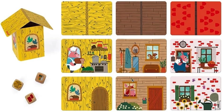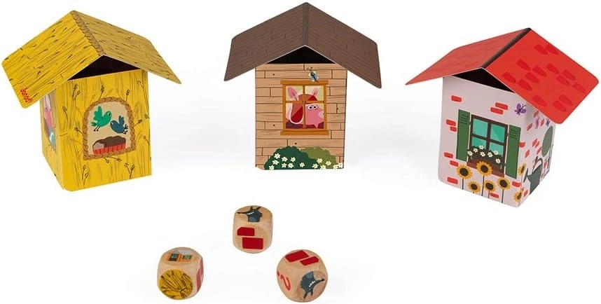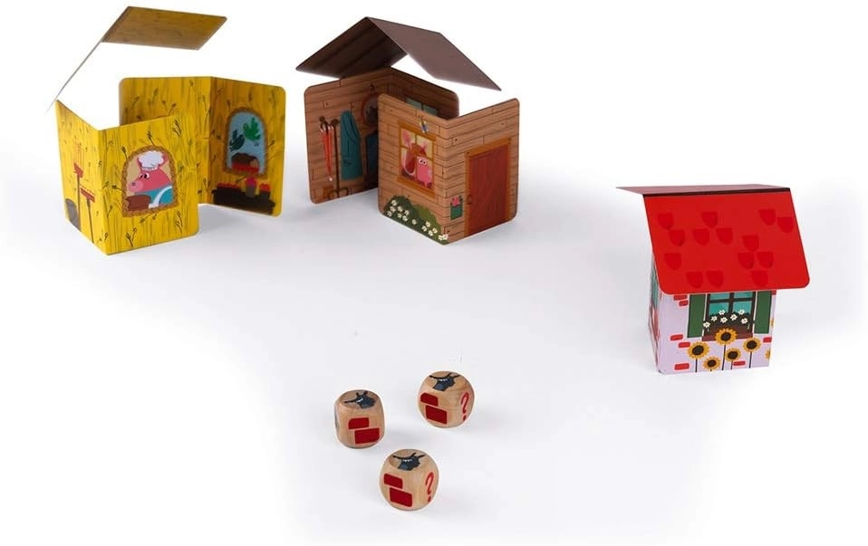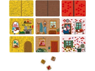 Ayuda a los 3 cerditos a construir sus casas con ayuda de los 3 dados. De 2 a 6 jugadores.