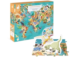 Con este puzle gigante, el niño descubrirá la geografía y aprenderá más sobre las fantásticas criaturas que son los dinosaurios.