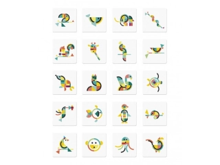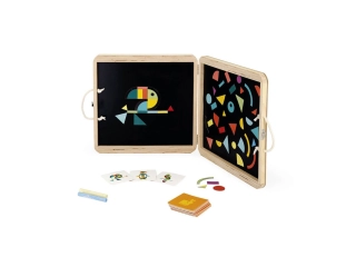 Este estuche de madera, cuyo transporte se facilita gracias a un asa de tela, también contiene 20 tarjetas de ejemplo que permiten a los niños de a partir de 3 años dar vida a animales coloridos siguiendo las indicaciones, como si estuvieran haciendo un rompecabezas. ¡Un buen modo de familiarizarse con las formas divirtiéndose!
