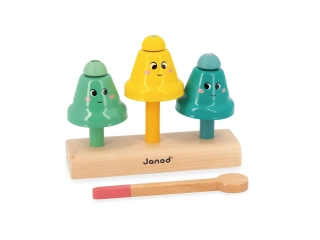 También forman parte de esta box de juegos las 3 campanas musicales y su baqueta de madera, que invitan al niño a experimentar: como en un xilófono, cada campana emite un sonido diferente y estimula así el oído del bebé.Por último, el niño disfrutará armando un puzle de madera de 12 piezas: acompañado por un póster, le sirve al bebé para ampliar su vocabulario y recomponer la escena, lo que estimula su capacidad de razonamiento.
