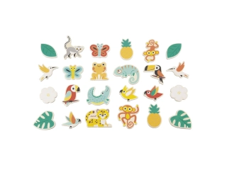 En este set de imanes, encontrarás: loros, cocodrilos, jaguares, camaleones, lémures, monos y muchos más!