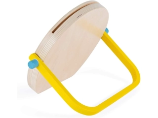 Este juego de madera duradero durará horas de práctica e incluye un mango amarillo brillante que funciona como un soporte.