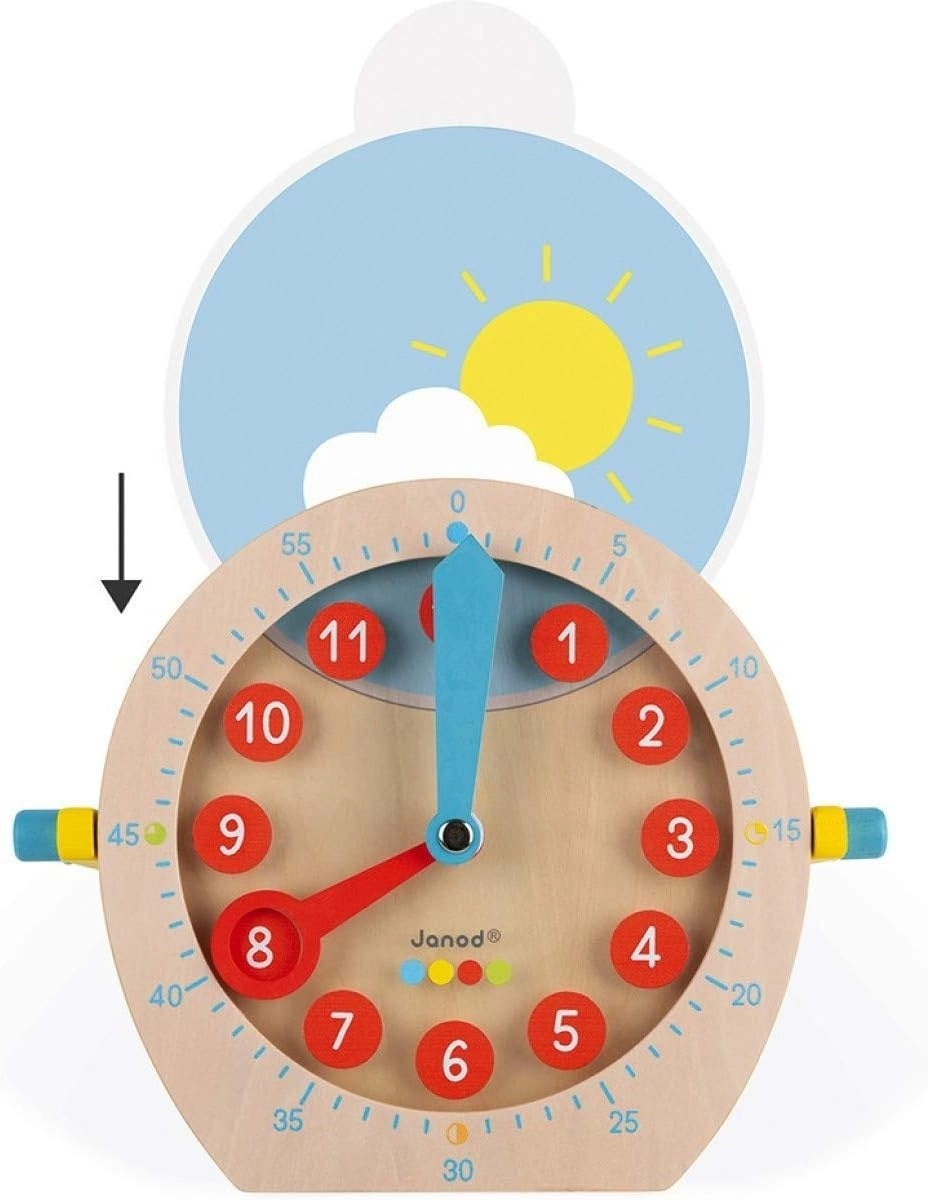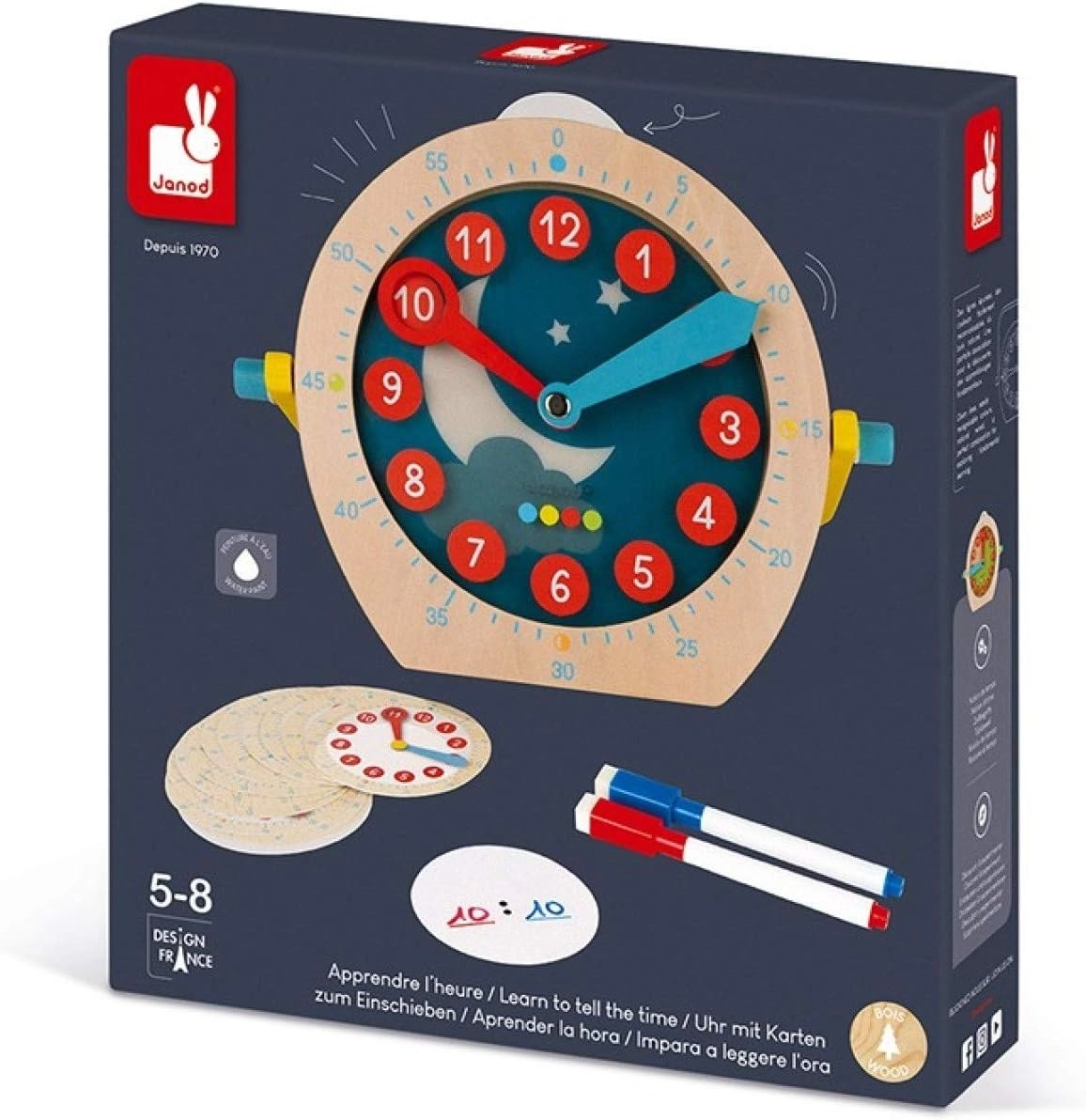 aprender la hora janod, reloj essentiel janod, juego educativo hora janod, reloj de madera infantil, juego didáctico reloj janod, juguetes educativos janod, aprender el tiempo janod, janod uruguay juguetes