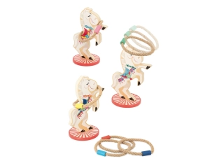 Este juego de lanzar anillas es apto para niños a partir de 3 años. En total, hay 6 anillas.
