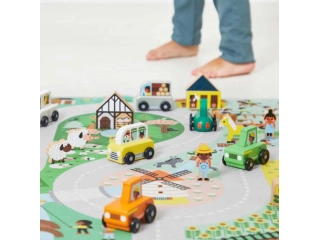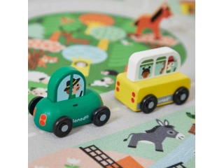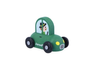 Este pequeño coche Janod forma parte de nuestra colección Cross Roads: una serie de alfombras de juego con circuitos.