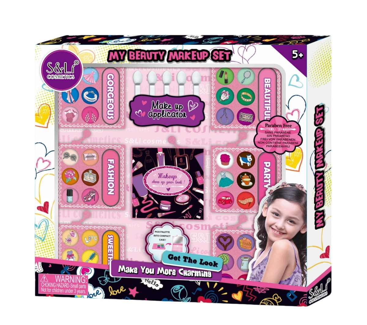 El Estuche de Belleza 6 en 1 S&Lí ofrece múltiples accesorios en un solo set, perfecto para juegos creativos de maquillaje y peinado.