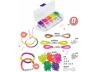 Ocio creativo a partir de 7 años: Actividad para crear 14 pulseras para los amantes de la moda, a partir de 7 años. El tejido se guía a través de la caja y una sola técnica de nudo. Las pulseras son fáciles de realizar. Los hilos de color neón permiten una infinidad de variaciones. Las hermosas perlas y separadores de plata Heishi para integrar en las pulseras los harán únicos.