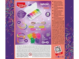 UNA ACTIVIDAD COMPLETA: Imagin'Style permite al niño desarrollar su creatividad, concentración y agarre, mientras se divierte. Los niños desarrollan sus habilidades y se inician en la creación artística de moda. Contenido: hilos no elásticos de color neón, hilos elásticos blancos, perlas Heishi de colores, perlas Heishi corazón y letra, separadores dorados Heishi, caja de almacenamiento para cuentas, caja decorada, manual de instrucciones y código QR tutorial.