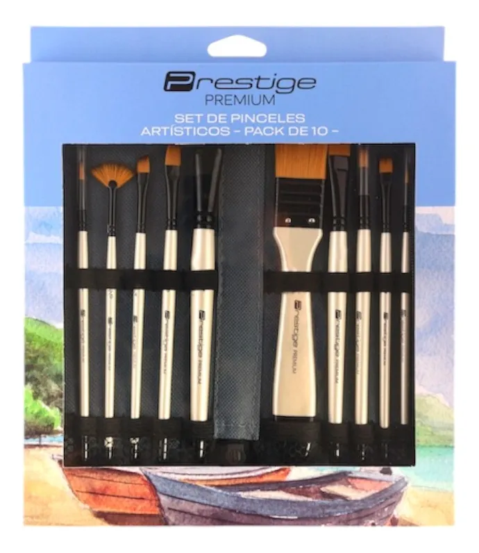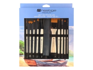 set pinceles prestige, pinceles artísticos x10, pinceles pintura prestige, pinceles para manualidades, pinceles escolares prestige, set de pinceles uruguay