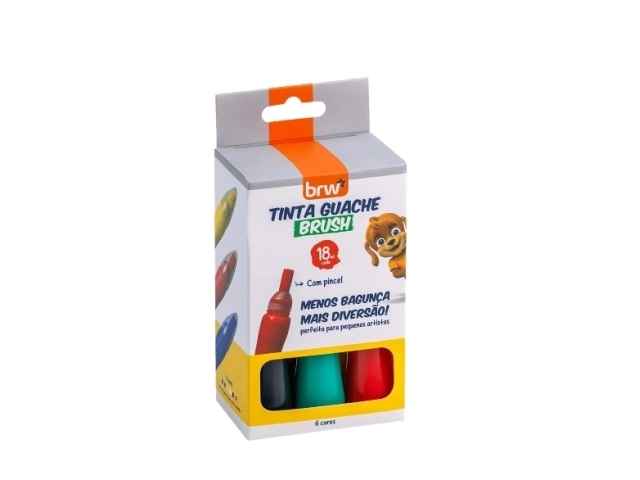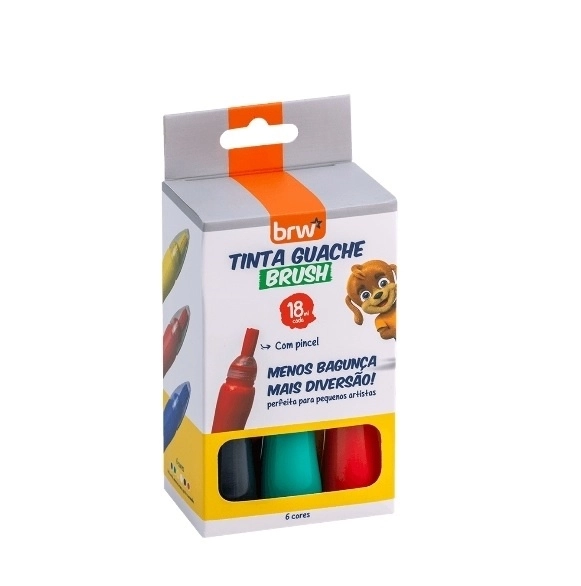 tempera brw en pincel, tempera brw 18ml, set tempera brw colores básicos, tempera infantil con pincel, temperas escolares brw, pintura infantil brw, set artístico brw, tempera práctica niños