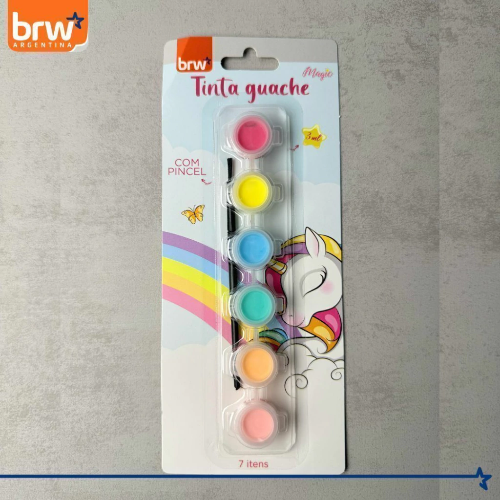 tempera brw magic, tempera brw x6 colores, set de pintura infantil brw, temperas escolares brw, temperas con pincel brw, set artístico brw magic, temperas creativas niños, temperas brw uruguay