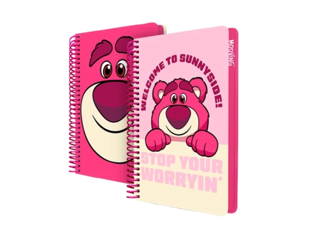 cuadernola mooving, cuaderno lotso, mooving 96 hojas, licencia disney, cuaderno escolar, papelería disney, cuaderno tapa dura, copymas, cuaderno toy story