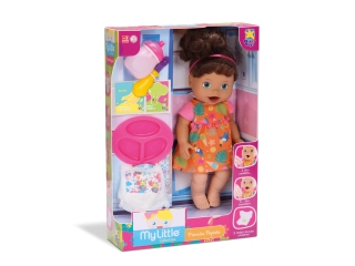 muñeca primera comida, my little collection muñeca, muñeca con accesorios de comida, muñeca para dar de comer, muñeca realista infantil, muñeca de juego de imitación, muñeca interactiva para niñas, muñeca my little collection uruguay
