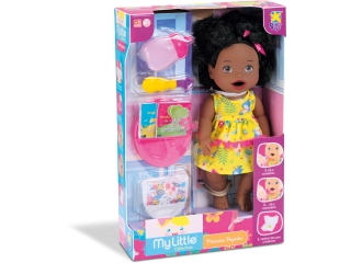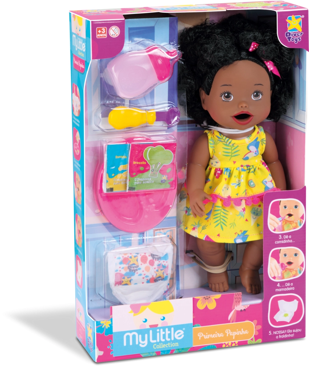 muñeca primera comida afro, my little collection muñeca, muñeca afro para niñas, muñeca con accesorios de comida, muñeca de juego de imitación, muñeca realista infantil, muñeca con rasgos afro, muñeca para dar de comer, muñeca afro uruguay