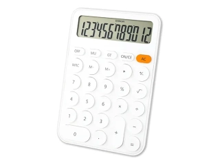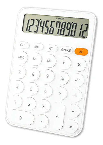 Calculadora de escritorio BIG DISPLAY de 12 dígitos. Memoria independiente, porcentaje y radicación. Teclas de retroceso, +/- y GT. Dimensiones: 105 x 28 x 158 mm. Disponible en tres colores: Blanco, Celeste Pastel, Rosado Pastel