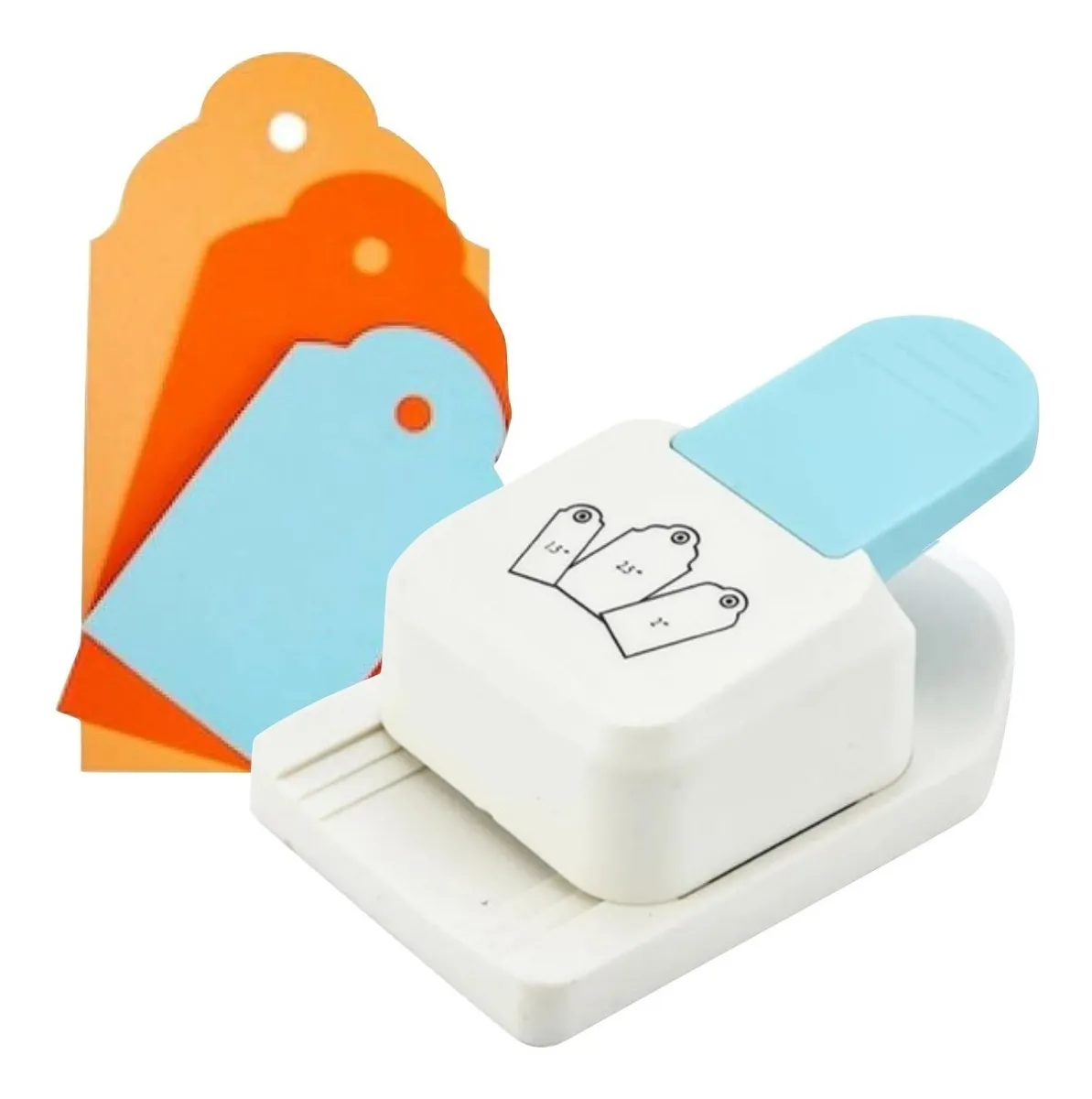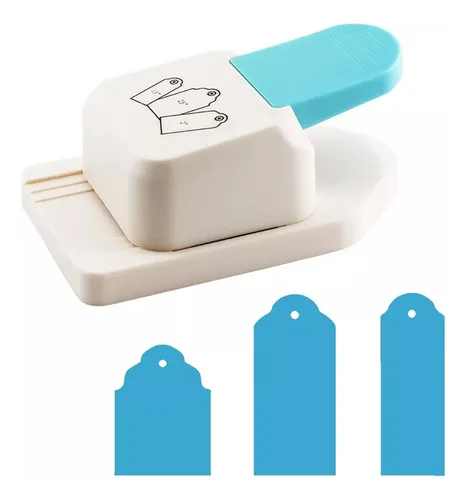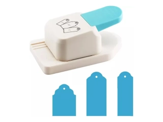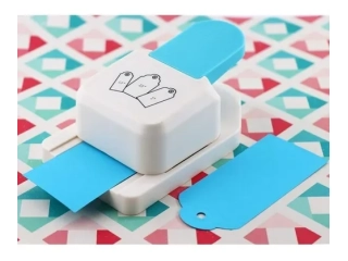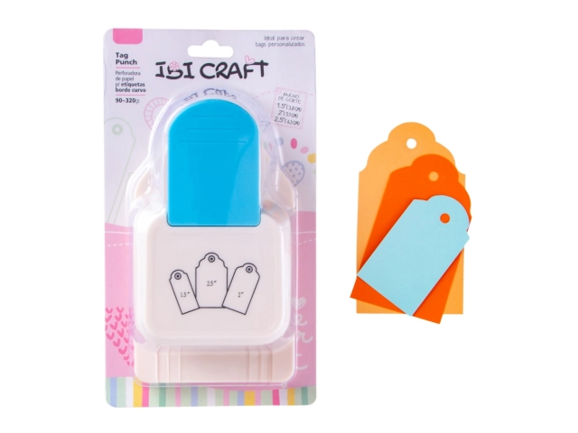 Perforadora IBI CRAFT para hacer etiquetas de papel o cartón liviano en 3 formatos diferentes de 1,5", 2" y 2,5", según imagen.