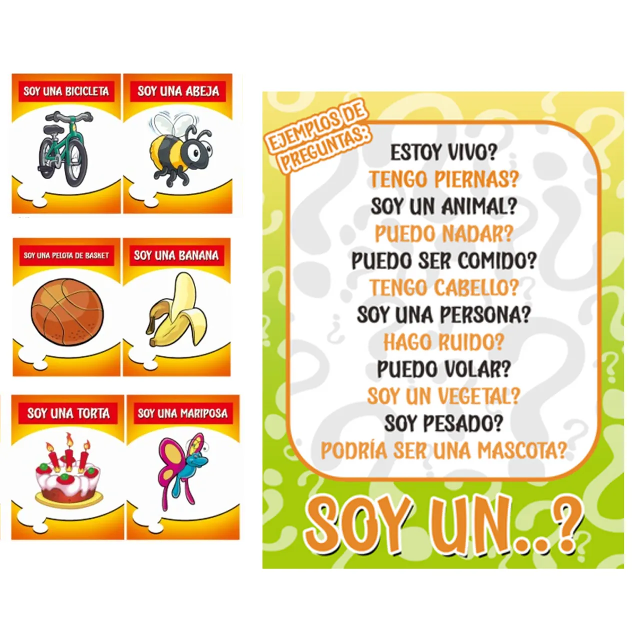 74 cartas: Con animales y objetos variados para adivinar.