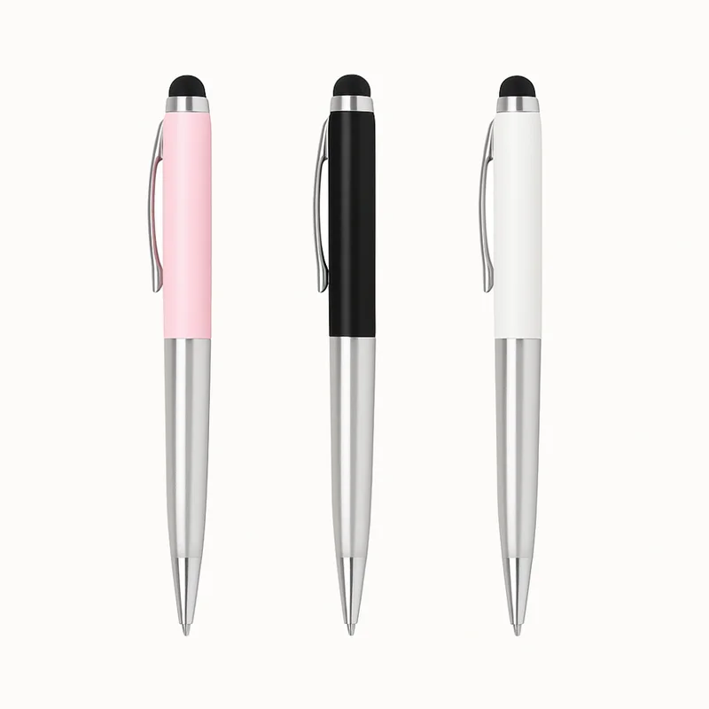 Con cuerpo metálico elegante, trazo suave y punta precisa, es ideal para la oficina, la escuela o el uso personal. Además, cuenta con función touch para pantallas, ofreciendo practicidad y modernidad en un solo accesorio.